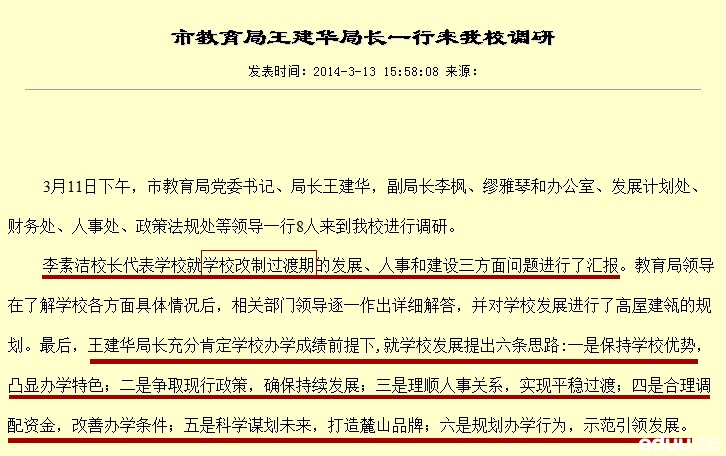 个人认为,王局长率队到麓山国际调研是有针对性的,这个针对性不是论坛中一些人说的“是为已经独立的麓山而来“,而是就学校由民办转为公办需要解决的问题作专题调研。报道中已经很清楚地点明了麓山李校长所作汇报只是针对学校转制。基于此,我就王局提出的6条思路解读如下。