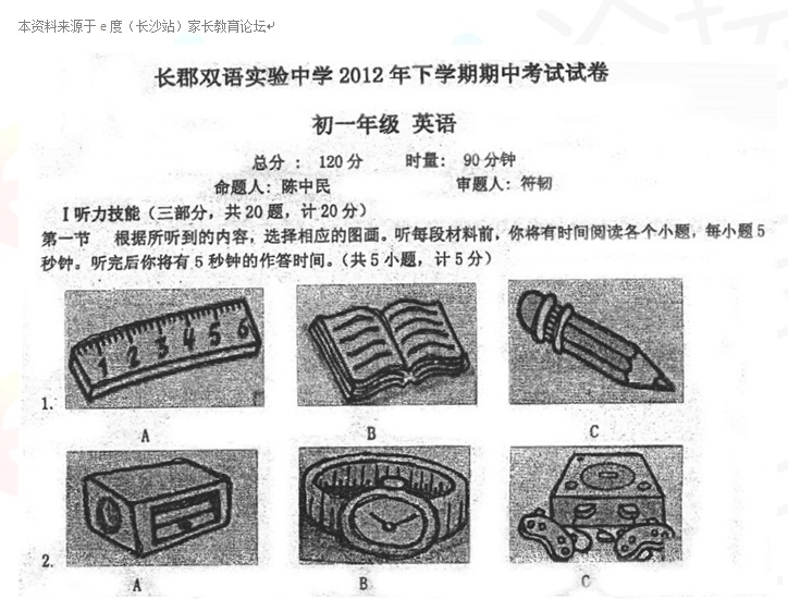 点击下载完整试题:长郡双语2012学年七年级上期中考试英语试题