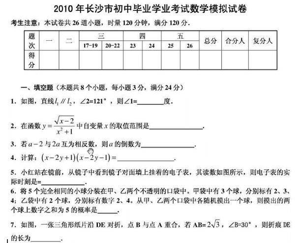 您现在的位置:中考长沙站 > 中考备考 > 中考模考 > 数学模考 > 正文
