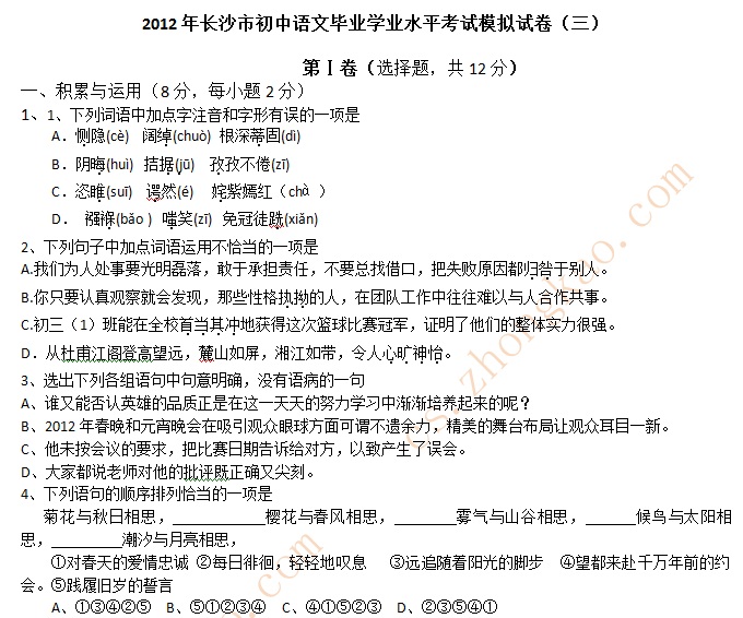 您现在的位置:中考长沙站 > 中考备考 > 中考模考 > 语文模考 > 正文