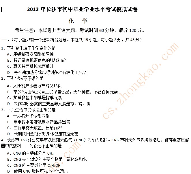 您现在的位置:中考长沙站 > 中考备考 > 中考模考 > 理综模考 > 正文
