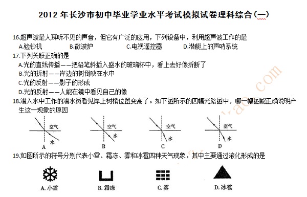 2012年长沙中考理综模拟试卷1物理部分