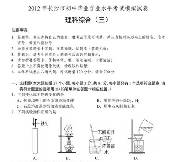 您现在的位置:中考长沙站 > 中考备考 > 中考模考 > 理综模考 > 正文