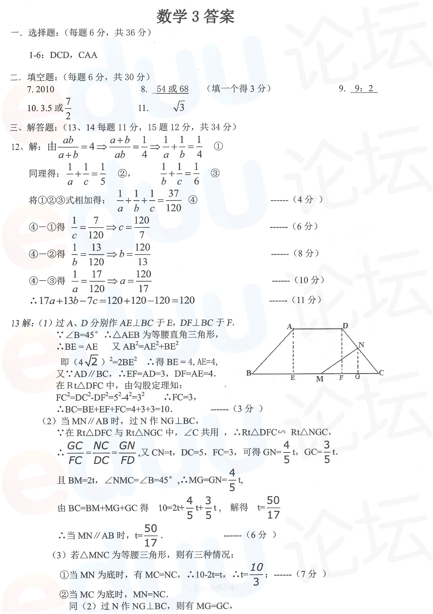 2013年长郡中学理科实验班考试数学密卷(3)答案