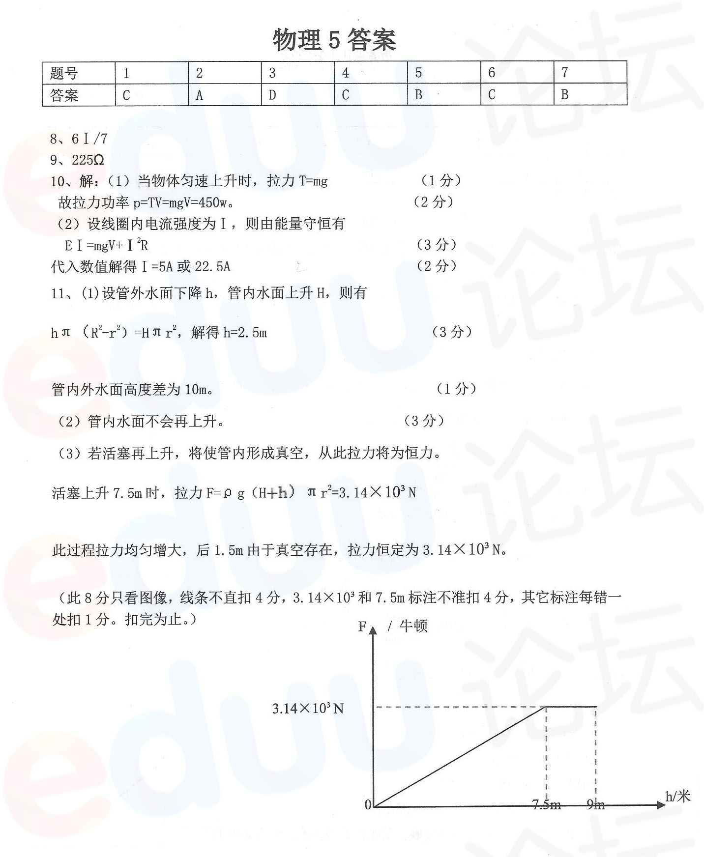 2013年长郡中学理科实验班考试物理密卷(5)答案