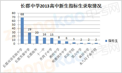 点击查看>>长郡中学2013年对口直升生和指标生分配情况