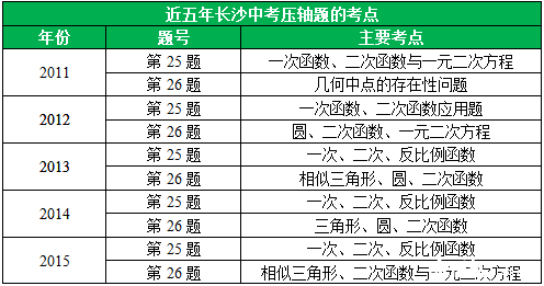 2011-2014年,长沙中考题型设置为10道选择、8道填空、8道解答题,压轴题为第25、26题;