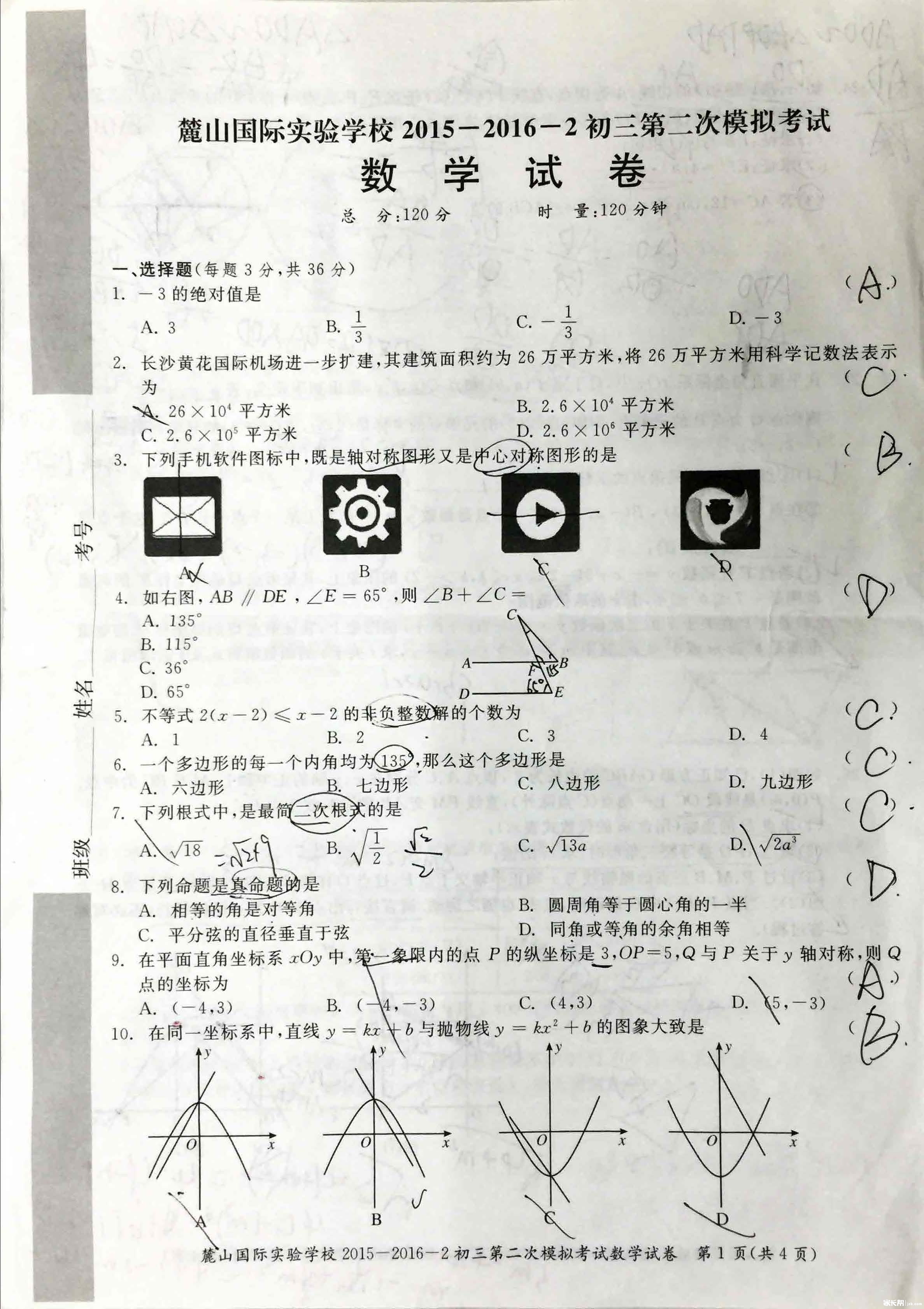 您现在的位置:中考长沙站 > 中考备考 > 中考模考 > 数学模考 > 正文