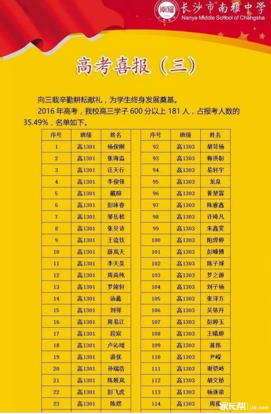 2016年长沙南雅中学高考喜报(3)