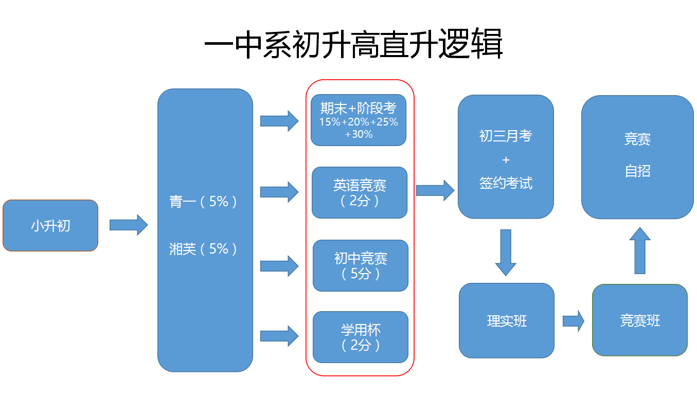 2.除一中外,三大名校都有内部的杯赛来提前锁定理实班生源(长郡澄池,雅礼春苗,附中攀登)。