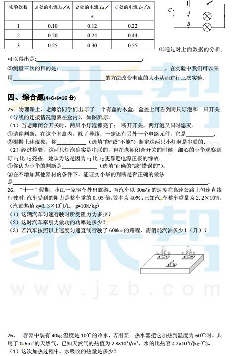麓山国际实验学校2016届九年级上第一次限时训练物理试题(4)