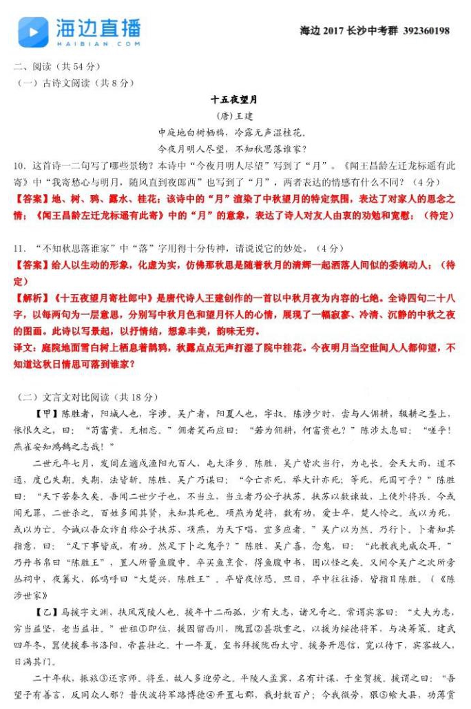 2016年长沙雅礼实验中学入学考试语文答案(4)