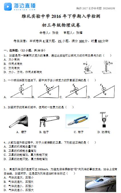 您现在的位置:中考长沙站 > 中考备考 > 中考模考 > 理综模考 > 正文
