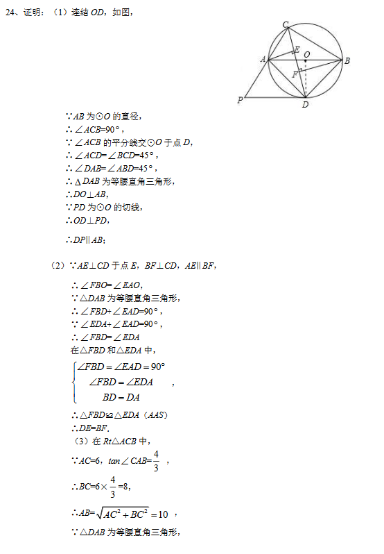 2016-2017学年长郡教育集团初三期中考试数学试题答案(3)