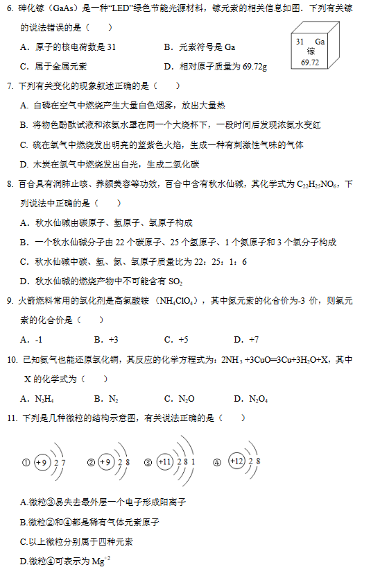 2016-2017学年湖南师大附中博才实验中学初三期中考试化学试题(2)