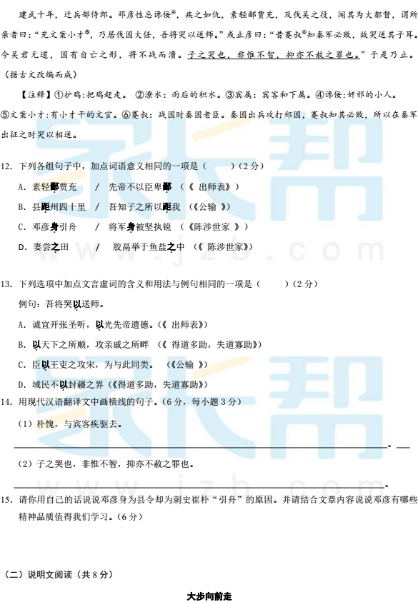 2016—2017学年长沙一中教育集团初三期中考试语文试卷(5)