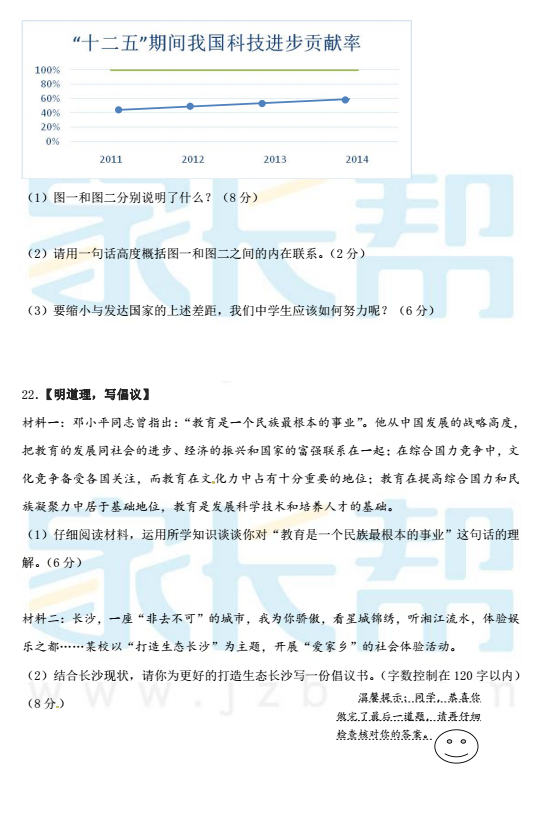 2016-2017学年长沙一中集团联考初三期中考试政治试题(5)