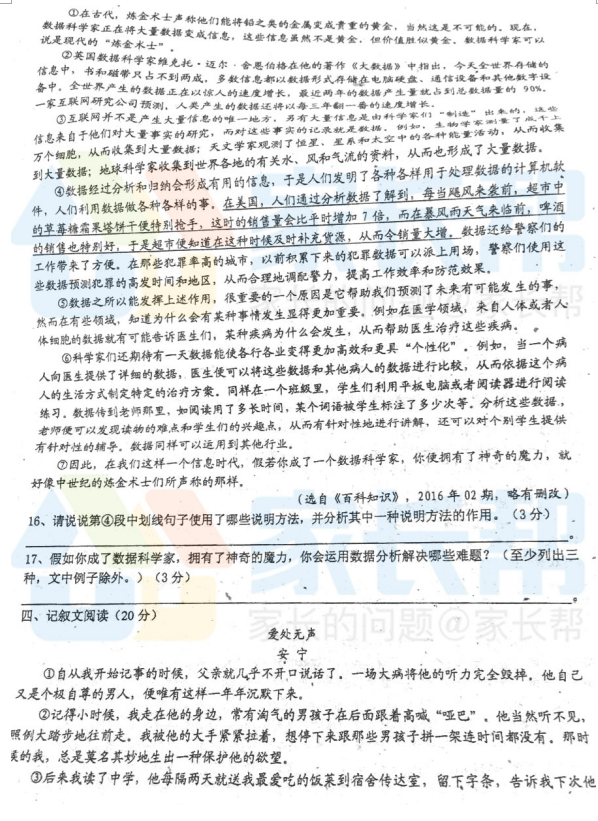 2016-2017学年长沙青竹湖湘一初二期末考试语文试题(4)
