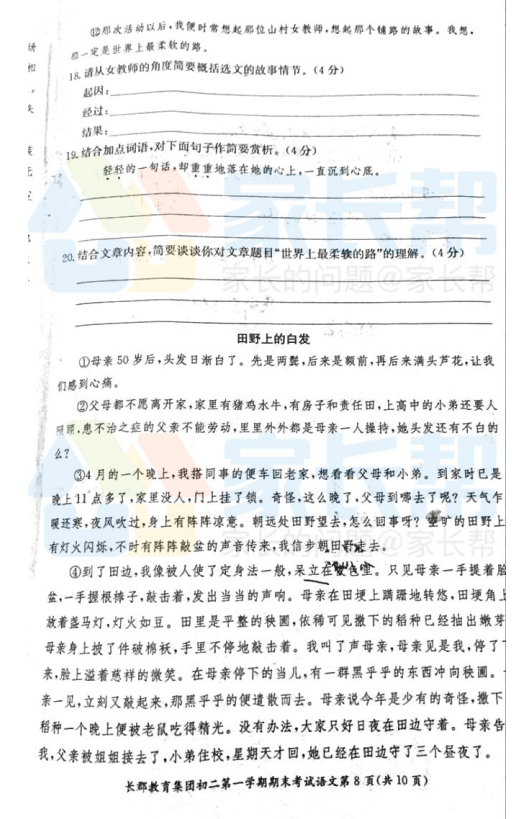2016-2017学年长沙长郡集团初二期末考试语文试卷(8)