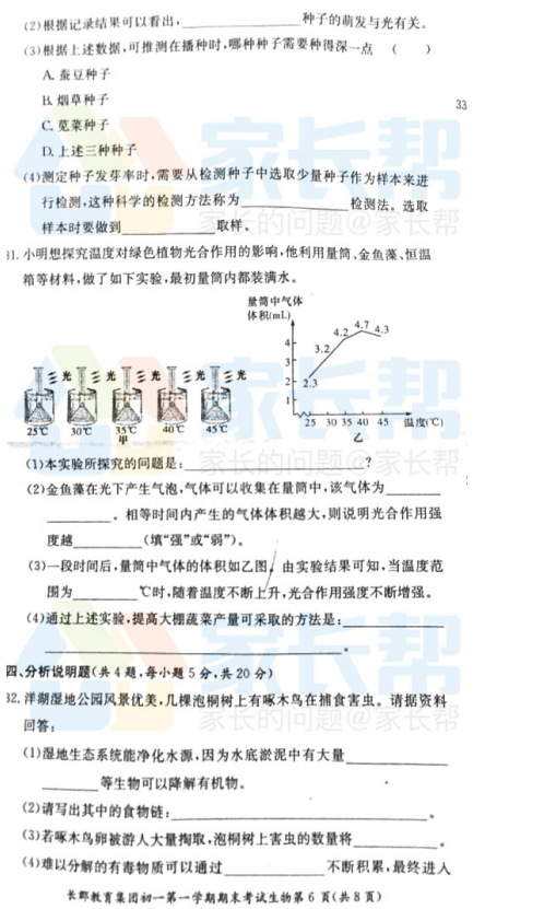 2016-2017学年长沙长郡集团初一期末考试生物试题(6)