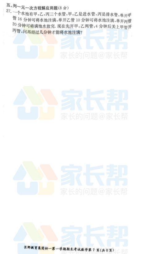 2016-2017学年长沙长郡集团初一期末考试数学试题(7)
