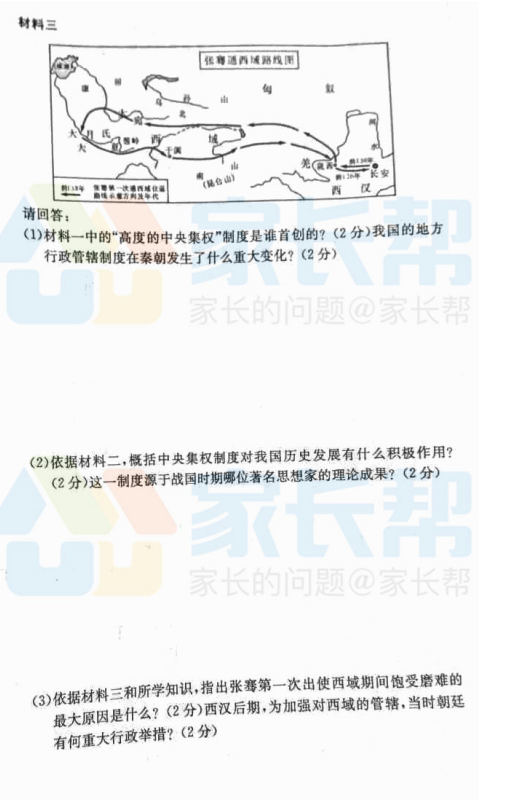 2016-2017学年长沙长郡集团初一期末考试历史试题(6)