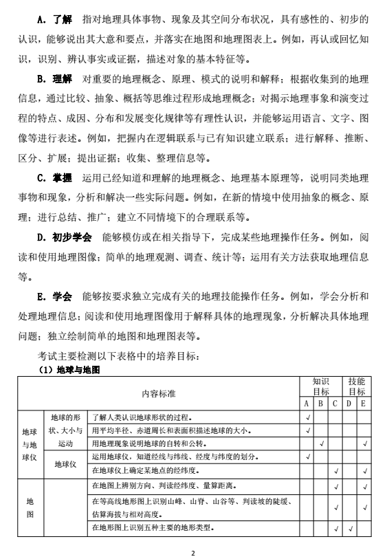 2017年长沙中考考试说明之地理(2)