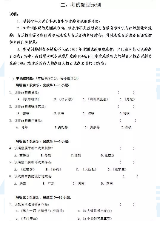 2017年长沙艺术中考指导纲要及样卷(音乐)(3)