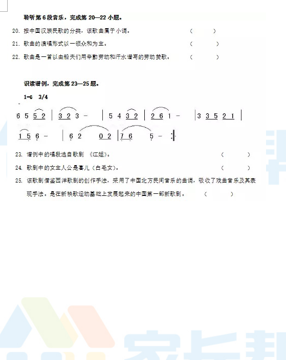 2017年长沙艺术中考指导纲要及样卷(音乐)(5)