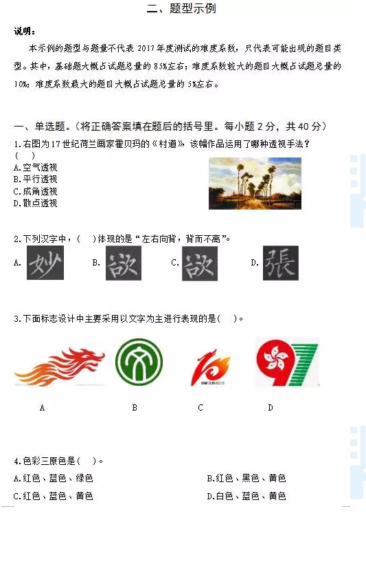 2017年长沙艺术中考指导纲要及样卷(美术)(4)