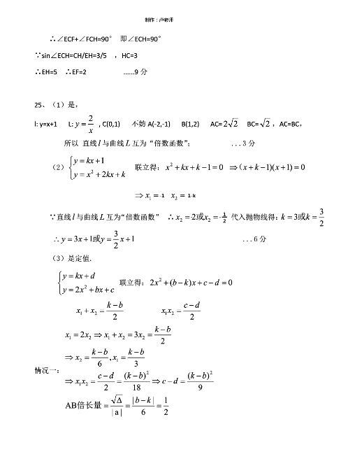 2017年长沙雅礼实验中学中考一模数学答案(4)