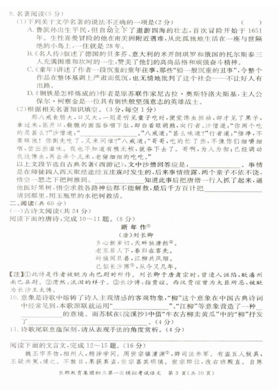 2017年长郡双语中考一模考试语文试题(3)