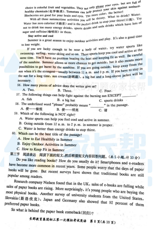 您现在的位置:中考长沙站 > 中考备考 > 中考模考 > 英语模考 > 正文
