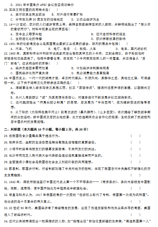 2017年长沙南雅中学中考二模文综试题(图片版)(3)