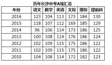首先我们其实可以根据近几年的中考情况来看。下面是这几年来长沙中考各科A线的汇总,我们可以看出,其实每年的A线变化并不大。(2015年语文总分从120升到了150,提前科总分从150升到了160)。