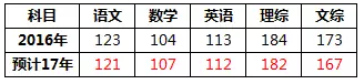 论坛还有牛人根据试题的难度分析,结合2016年的A线和难度,推算今年的各科A线如下: