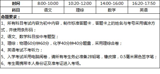 2.考试科目:语文、数学、英语、理科综合(物理、化学),具体安排如下:
