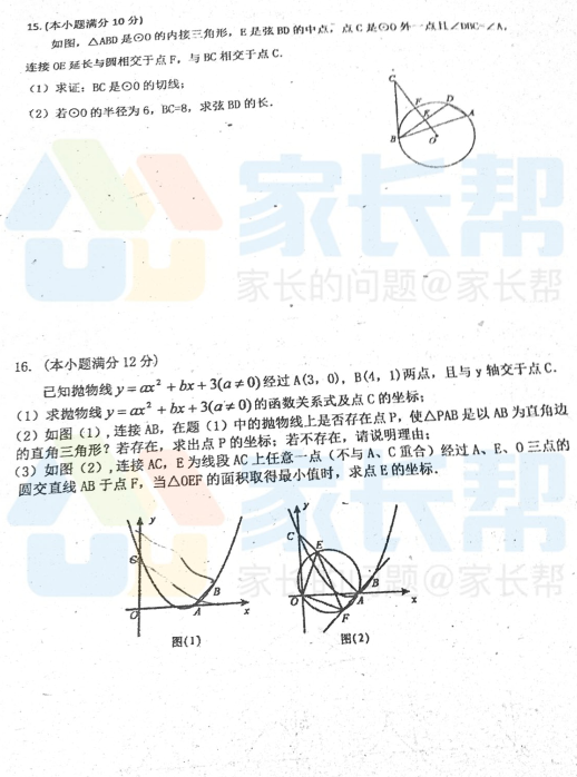 2017年长郡集团澄池杯复赛数学试卷(4)