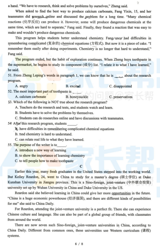 2017年秋季雅礼集团初三期中十五校联考英语试卷(6)