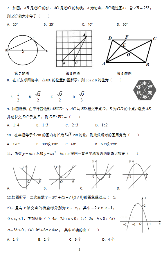 2017-2018学年长郡双语实验中学九年级期中考试数学试卷(2)