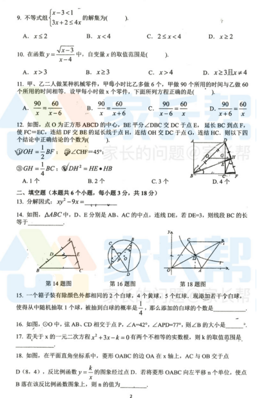 2017年秋季雅礼集团初三期中十五校联考数学试卷(2)