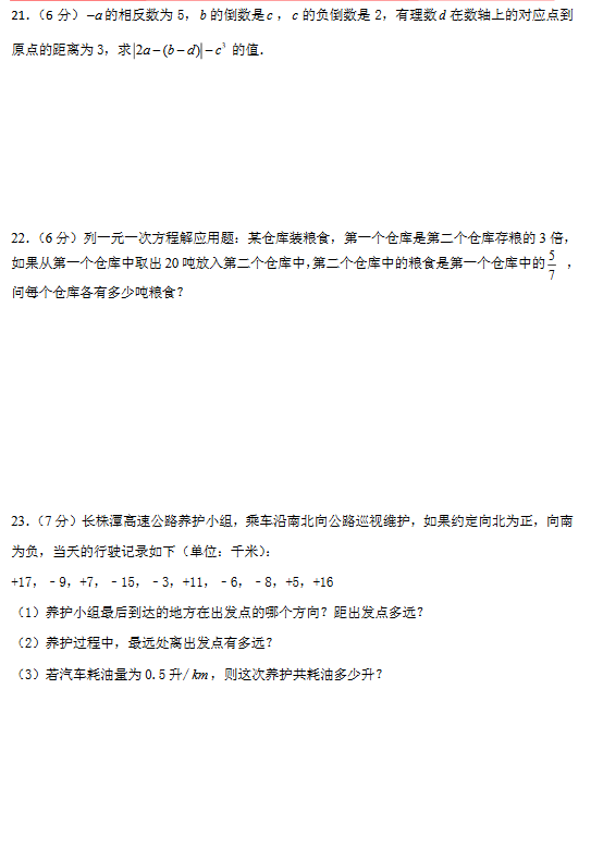 2017年秋季长沙广益中学初一期中考试数学试卷(图片版)(4)