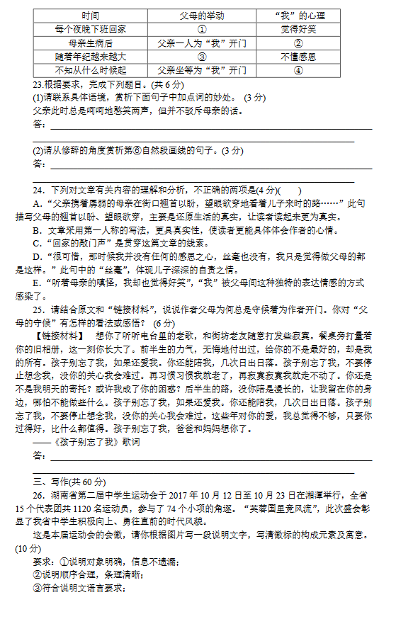 2017年11月长郡集团初三期中考试语文语文试卷(8)