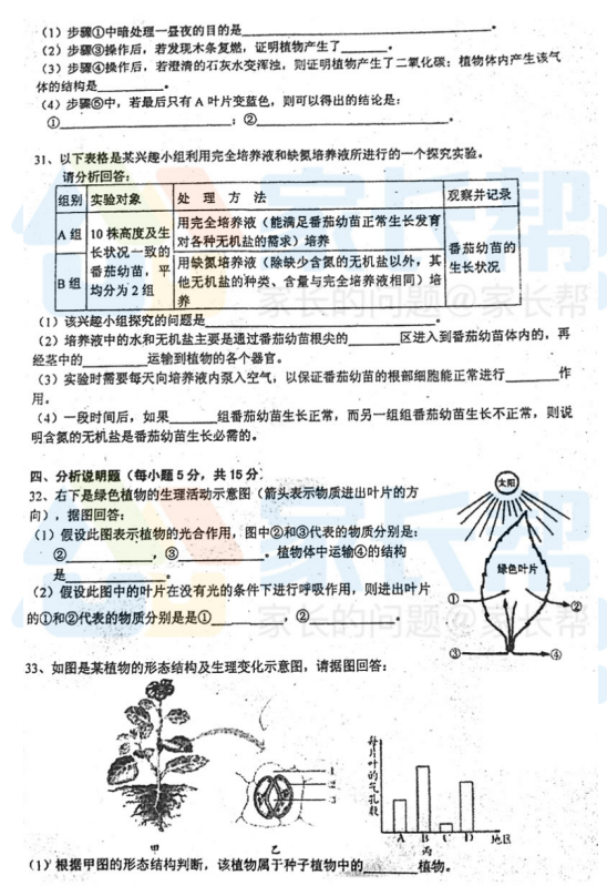 2017-2018学年青竹湖湘一初一上生物期末试题(5)