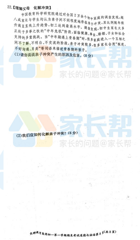 2017-2018学年长郡集团初一上期末政治试题(8)