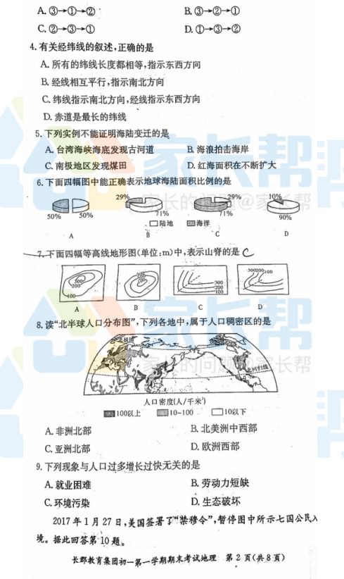 2017-2018学年长郡集团初一上期末地理试题(2)