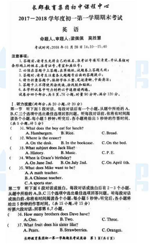 您现在的位置:中考长沙站 > 初一年级 > 期末试题 > 正文