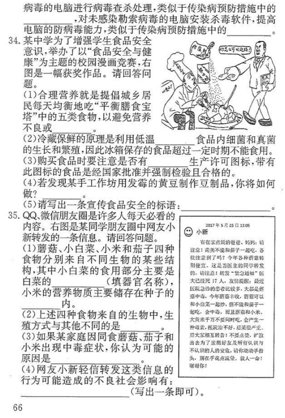 2018年长沙初中学业水平考试生物试题(样卷)(8)