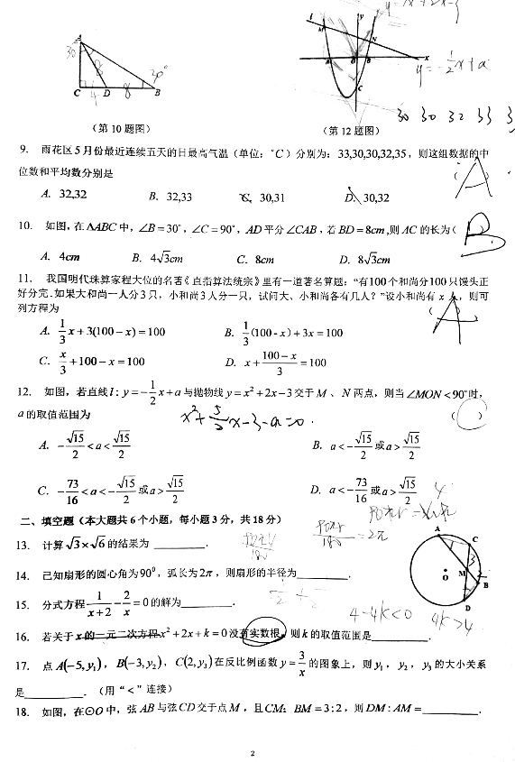 2018年长沙雅礼实验中考一模数学试题(2)