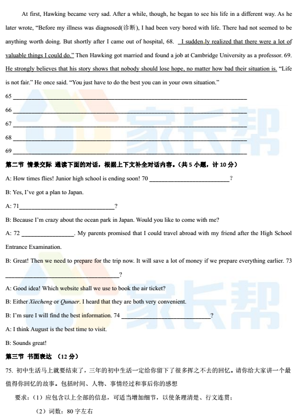 您现在的位置:中考长沙站 > 中考备考 > 中考模考 > 英语模考 > 正文